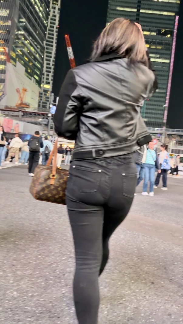 1人目(表題)はレザーのジャケットに黒のスキニーデニムのお姉さん!