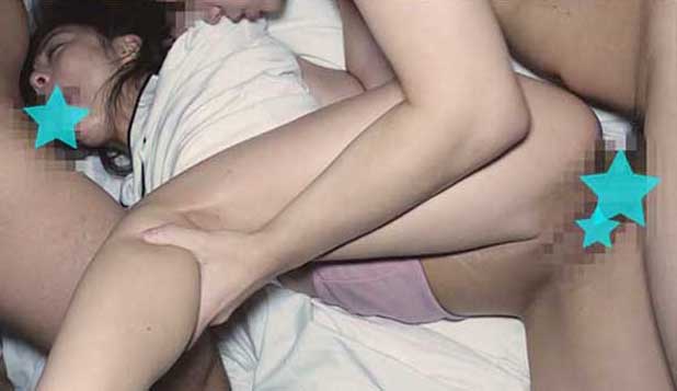 美ボディがベッドの上を挿入待ちの連中にゴロゴロと転がされてそこらじゅうでヒーヒーいわされ続けてます。