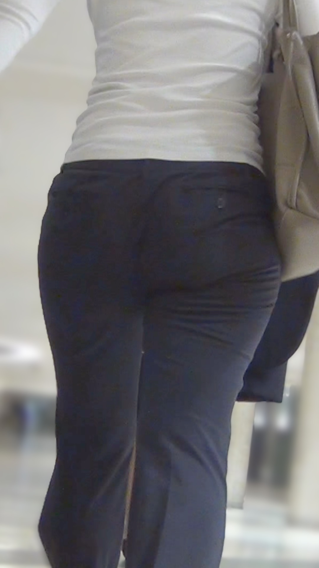 ピッタリめのスラックスで、デカく柔らかいお尻のお肉を、激しく左右にフリフリ、超えちえちです。