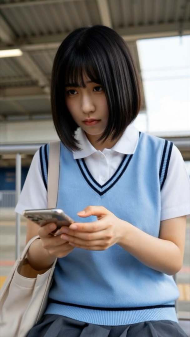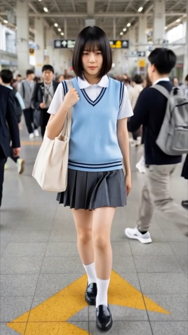 今回のイメージは夏服のよく似合うJKっぽい女性です。夏らしいさわやかな水色のベストがよく似合います。