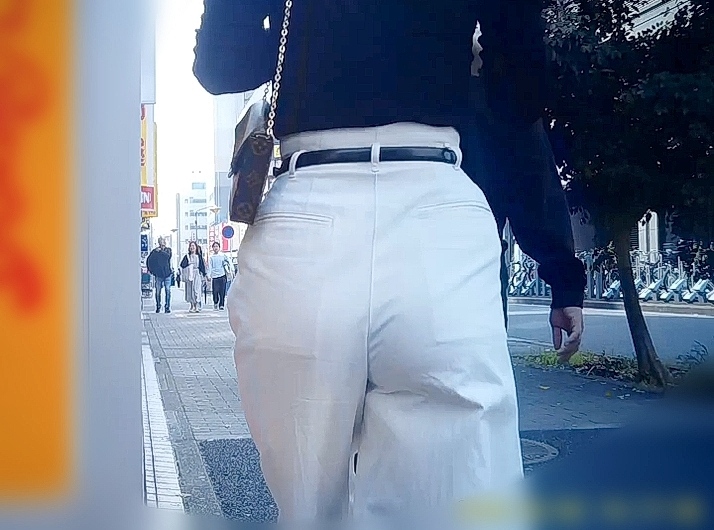 超絶クビレスタイルに美尻の美人お姉さんがタイトな白パン履いて歩いてます。