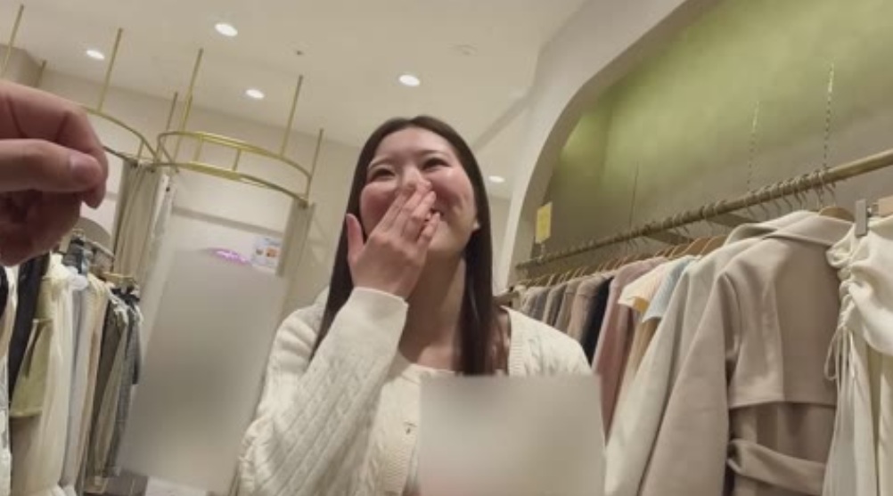 とりあえず服のサイズを聞きまして、服を見てくれる時に隙を見せてくれたので優しくそっと差し込み。