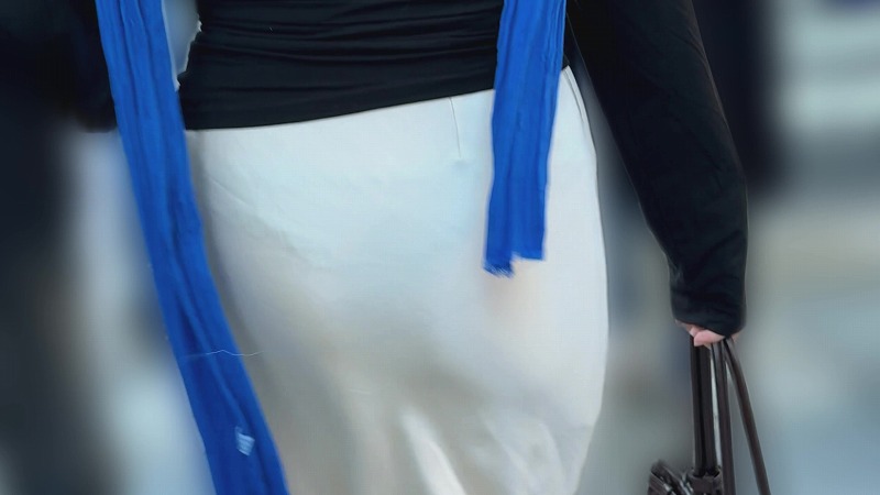 街を歩く、サテンのスカートを履いたお姉さんを撮影させていただきました。