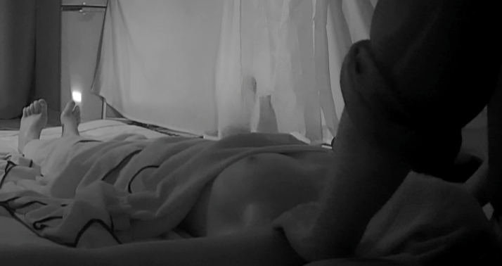 徐々にタオルがずり下がり、彼女の美しいおっぱいがほとんど丸見えの状態に。
