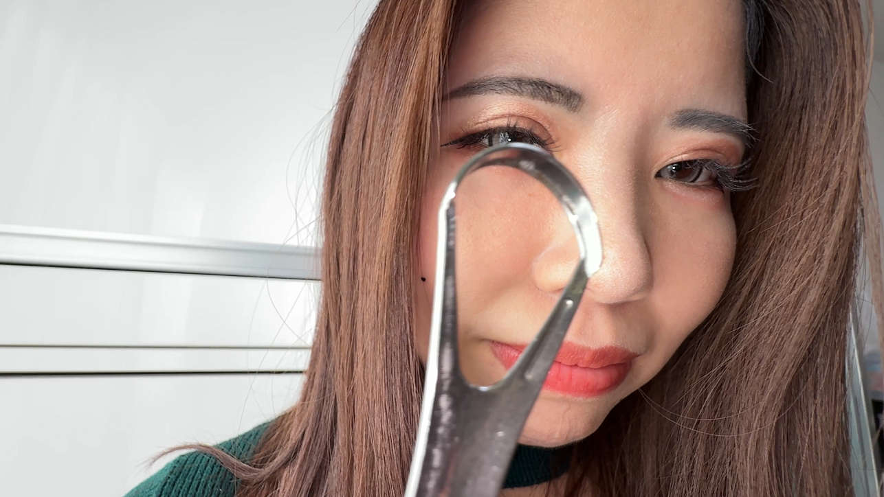 専用器具で舌苔を採取後、なんとその舌苔を嗅いじゃいますW