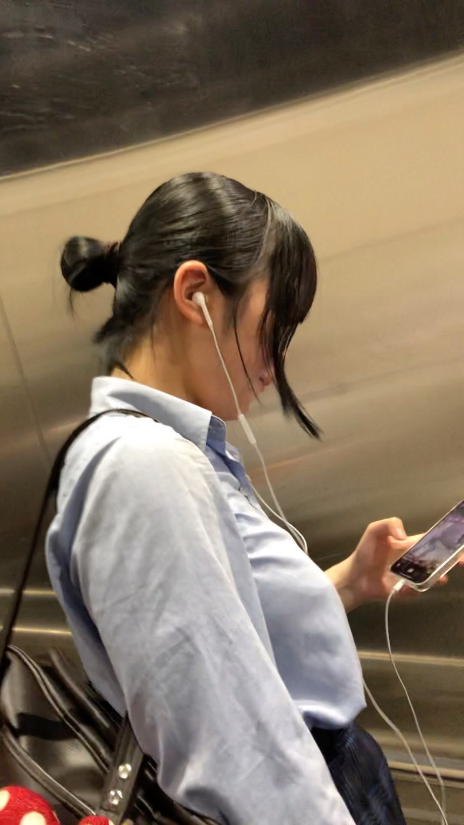 同じ駅で降りようとしている制服JKを発見!