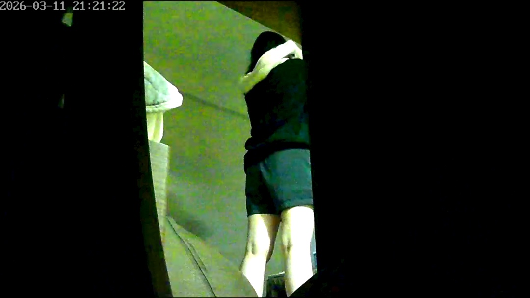 後半はコタツに入ってゆっくりくつろいでる様子。 さっきまで全裸だった彼女が、温かい部屋着でリラックスしてる姿も意外と興奮する。マニア向けだけど絶対に音量上げて聞いてくれ。 5分くらいから12分ぐらいまでは、彼女がお風呂に入ってる時のシャワー音や、かすかな声が結構クリアに聞こえる。 カメラを壁際に移設したから、お風呂がすぐ後ろになってて臨場感がすごいんだ。