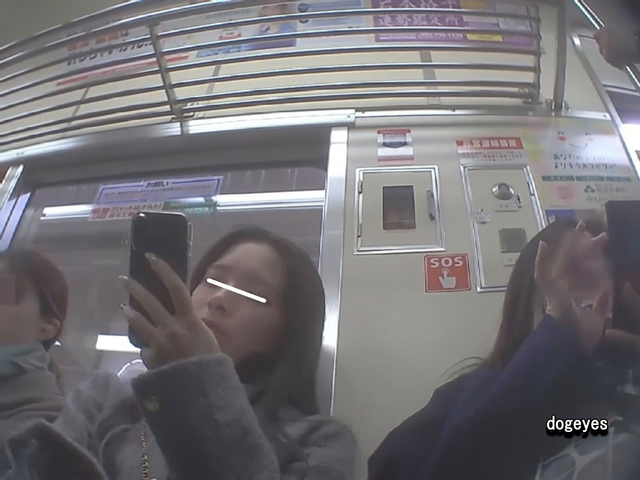 電車待ちの生足膝上10cmミニ発見、座った前に貼りつきました。スマホに夢中で緩んだ膝に近づきました。スマホ見終えると膝が閉じる。その間に美顔を頂きます。再度緩んだ隙にぎりぎりまで突っ込んでいます。電車の揺れに合わせ前後。エスカレーター時長い髪の毛を掻き揚げるシーン良いです。