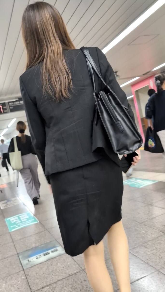 混雑する駅構内にて遭遇した高身長スタイル抜群なリクルートスーツOLさん…。人混みの中でも目立ちます!