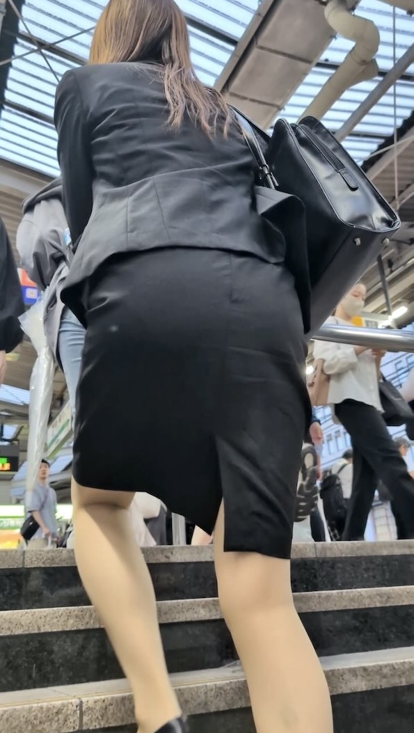 【557】二度の階段登り大サービス!な高身長リクスーOLさん!