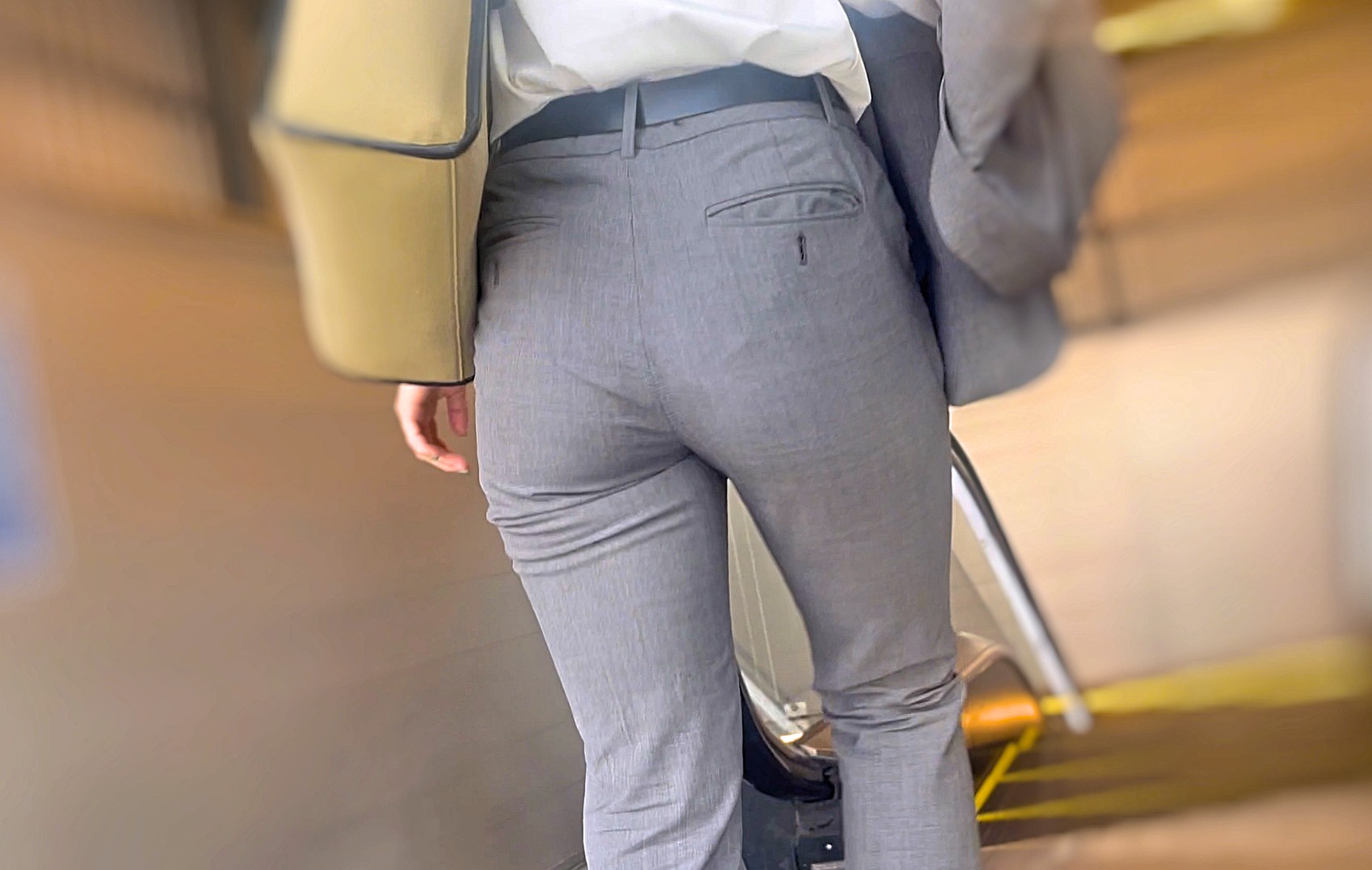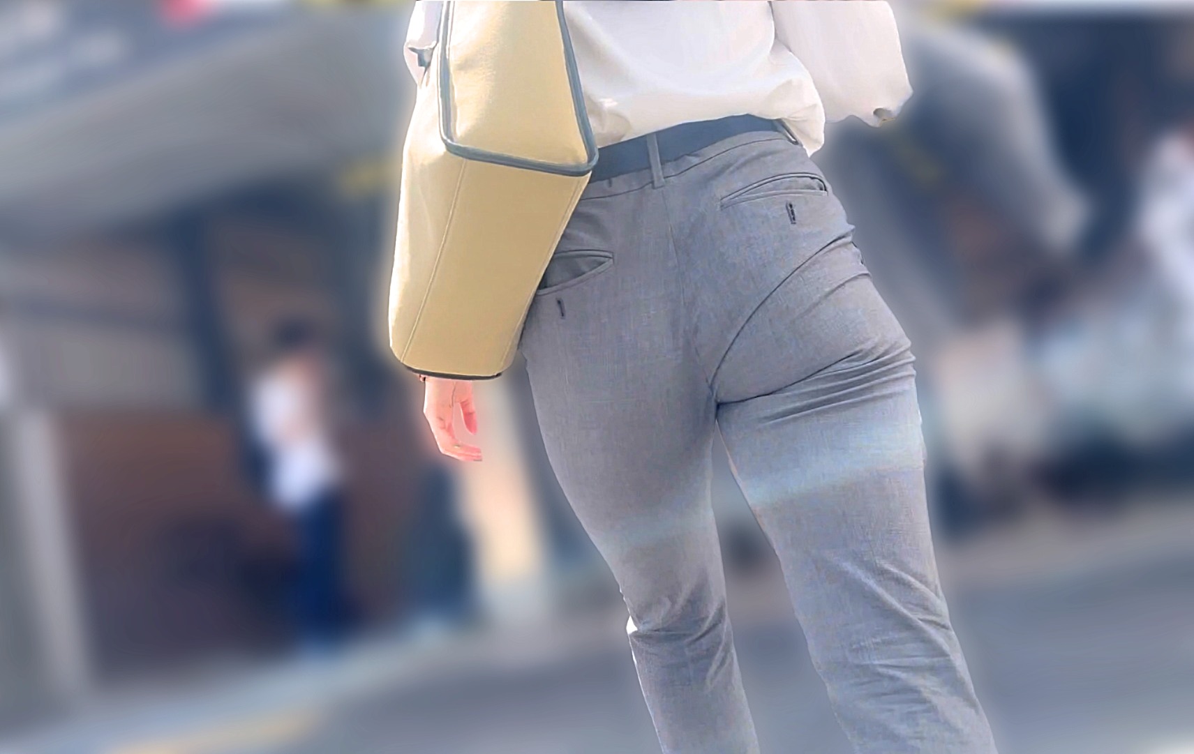 グレーのスラックスからは歩く度に強烈に浮き出て食い込むパンティラインを見せつけるなどたまりません。