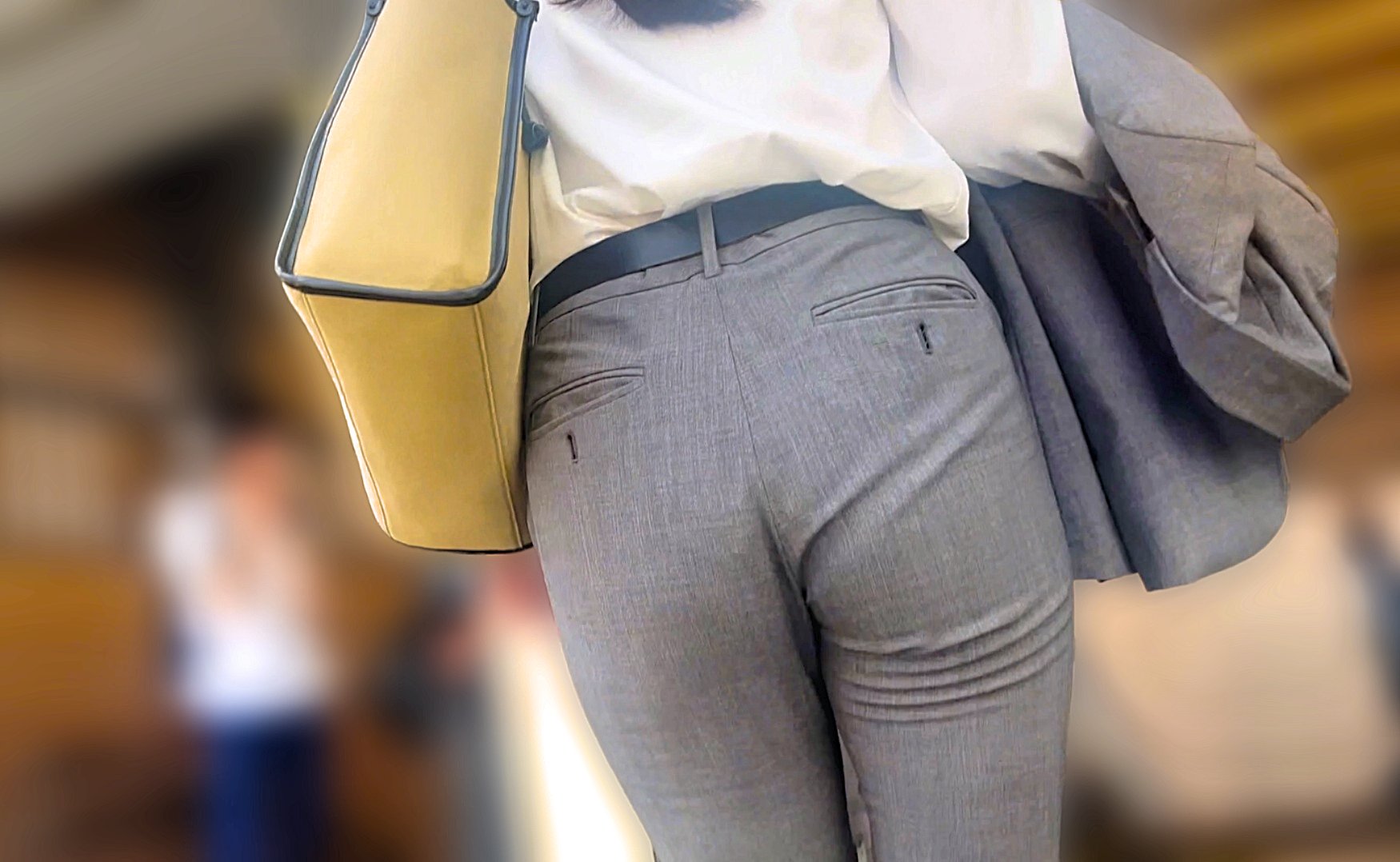 グレーのスラックスからは歩く度に強烈に浮き出て食い込むパンティラインを見せつけるなどたまりません。