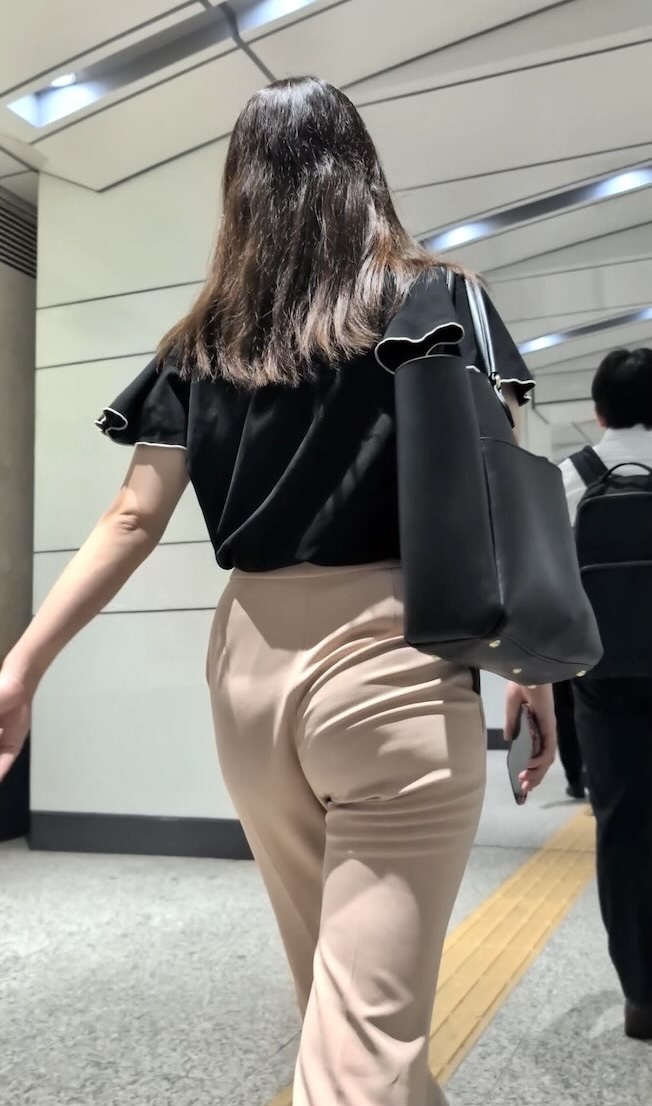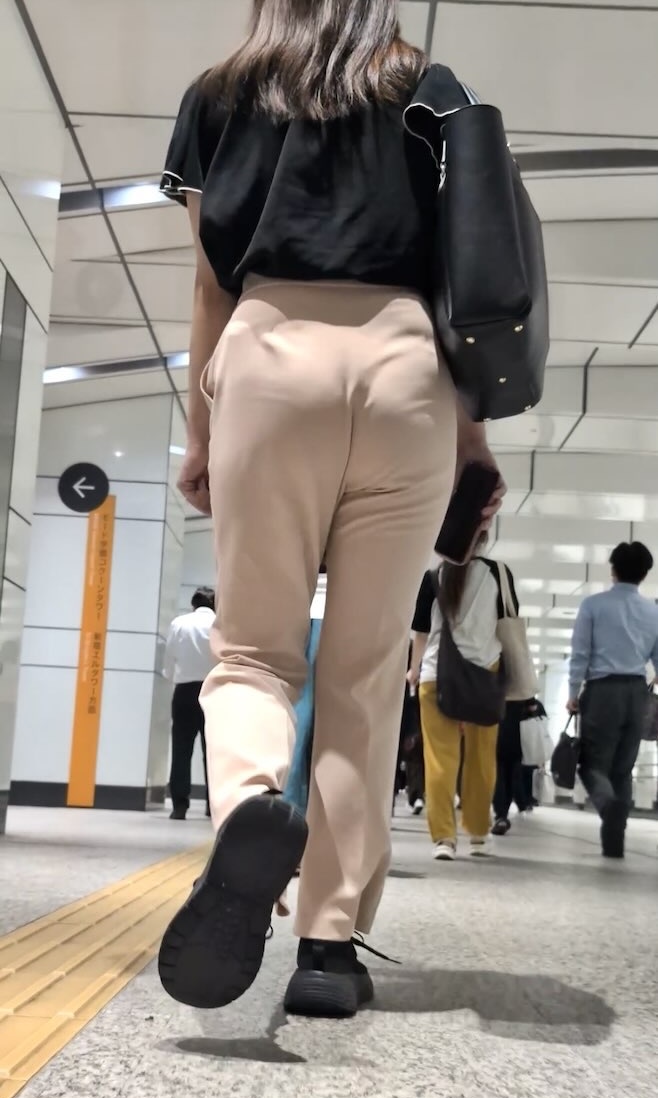 オフィス街から駅までの歩行を同行します。長尺にてじっくり堪能できます。よく見てみると、躍動するプリプリ尻が様々な表情を見せてくれます。まさに桃の如く浮き上がるボリューム感、魅惑的なラインが浮き上がったり、真ん中に割れ目が現れたり…?