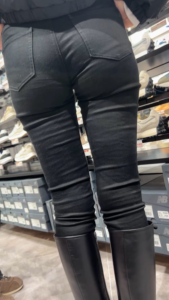 その後店舗移動までついて行き、店員さんと話してるところ後ろからしっかり接写!パンティラインでお尻が割れてるのが丸わかりです笑 ズボンを上げて食い込む姿は射精不可避です!笑