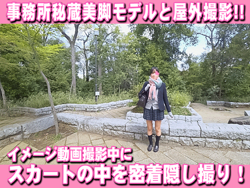 イメージ動画素材の撮影中にモデルのパンチラ隠し撮り8 事務所秘蔵美脚モデルさんJ●制服で再登場!屋外で密着撮影