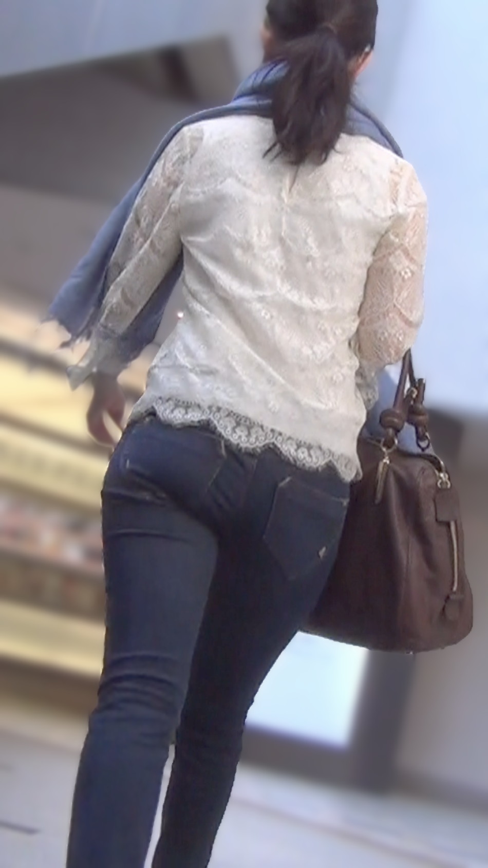 スタイリッシュな、パツパツ デニムお姉さんの歩行シーンになります。