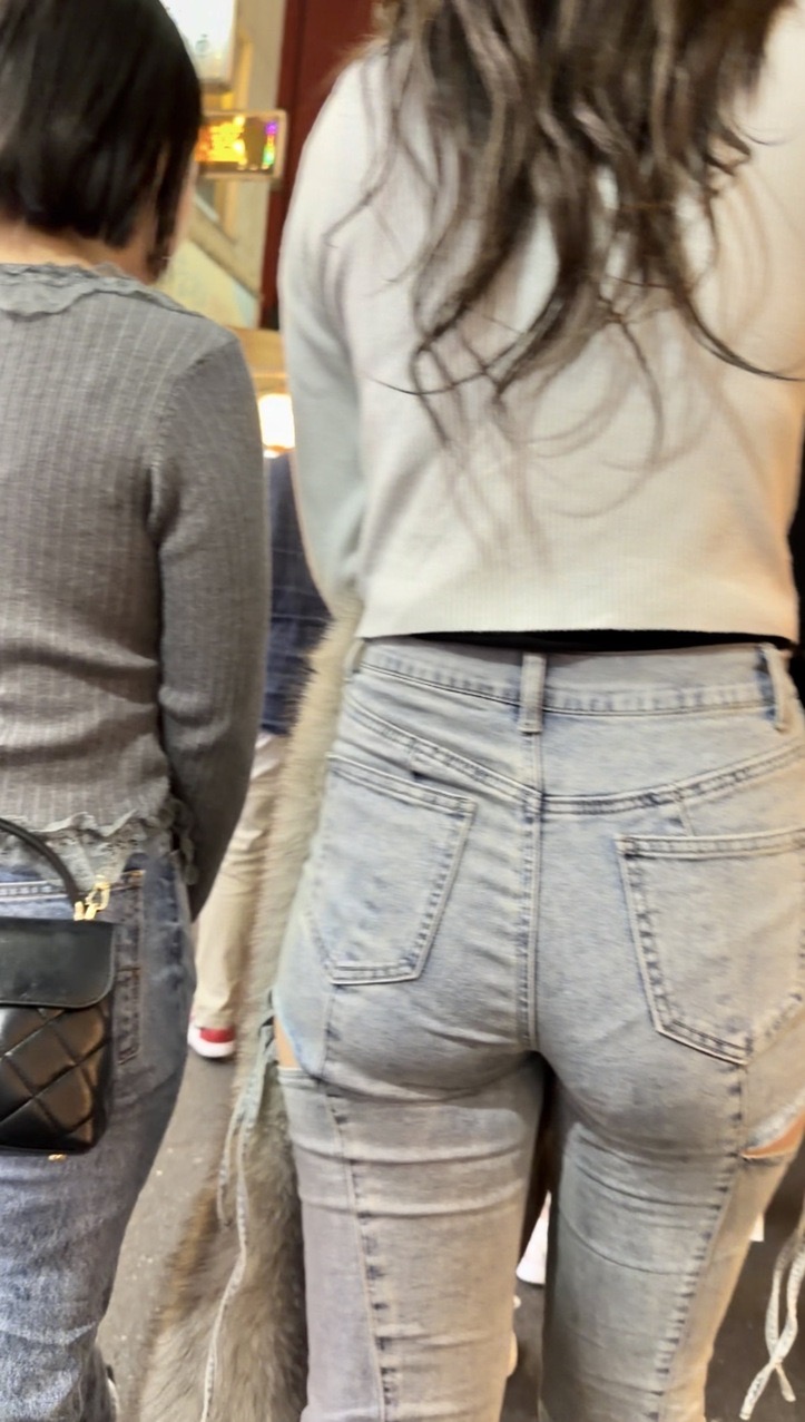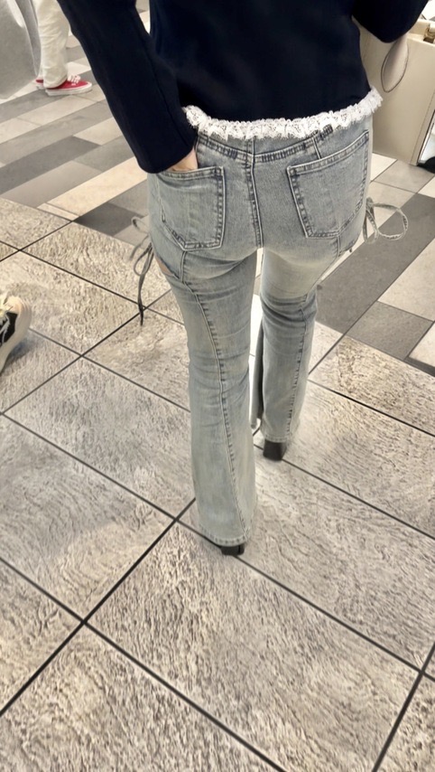 2人目の女の子はすらっとした体つきですがデニムの締め付けで腰、お尻周りのお肉がむにゅってなってるところがgood!