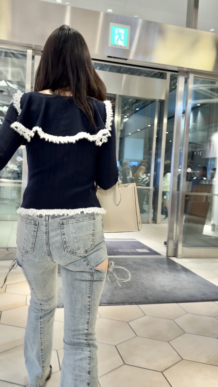 最近よく見るカットリボンフレアデニムのエロ尻お姉さんを2名収録しました!