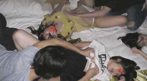 3人とも重なるようにベッドにねかされて代わる代わるに挿入されっぱなしです。