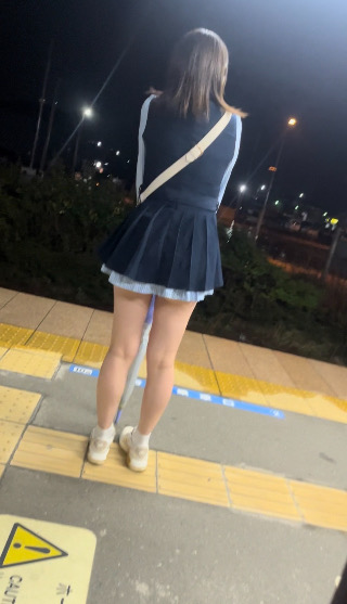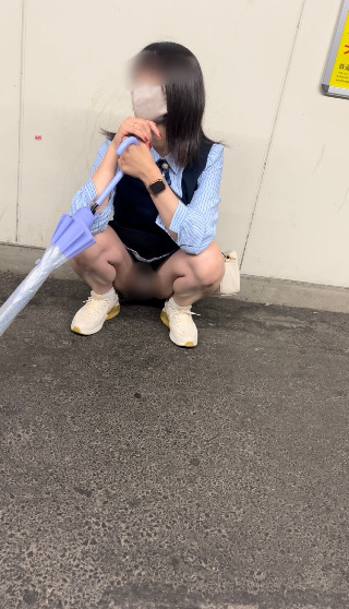 短すぎるミニワンピなのに、無防備に足を投げ出して…視線の先には「いちご柄」が堂々と鎮座していました。