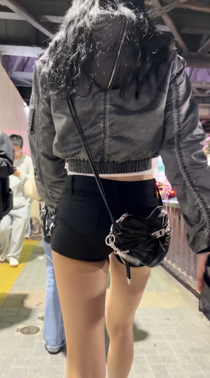 1人目(表題)は黒のアウターに黒のショートパンツコーデのお姉さん!