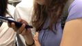 野郎がゆなちゃんのお尻に股間を擦りつけてフリフリします。