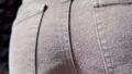 本作最大の注目ポイントは、お尻のラインと平行に捉えた、至近距離のサイドバックショット。彼女が腕を振り、リズム良く歩を進めるたび、薄灰色の生地越しに伝わるヒップの躍動感がたまりません。一歩ごとに「ずっしり」と左右へ波打つ肉の重みと、その柔らかな弾力。