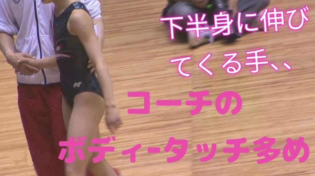 そんな選手に付き添いのコーチは、左手で腰からお尻のあたりを触ってきます。