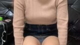 薄暗い机の下で若さ溢れるプルプルの太ももを開き、縞Pが誘います。