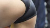 まずは冒頭のゼッケン37番のブルー生レオタっ娘です。かわいいルックスと下半身のムチムチ感のアンバランスさがたまりません。平均台の練習中ですが、動く度に震える太もも、そしてはみ出るショーツに注目です。