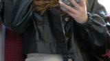 電車の対面に座り、全体をじっくりと眺めます・・・やはり、素材はなかなか。美脚、肌ツヤ、いいモノを持ってます。