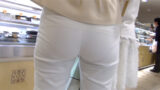 キュロットの子は裾が割と開いているタイプだったので結構中が見えましたが、キュロットにインしているブラウスの裾があってその隙間から食い込んだ黒Pと尻肉がチラチラと見え隠れします。