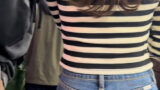 今回は文房具屋さんにご来店された30歳前後のきれいなお姉さんです。マスク越しですがショートカットがお似合いの美人さん。細身の方でしたのでおっぱい小さそうだなぁと思って近づくとインナーの胸元にいい具合の隙間ができていました。