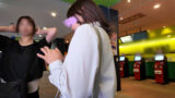 ナチュラルメイクの美人さんが階段に座ってパンチラしてる動画です