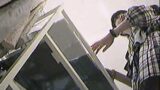 野外や、室内、黒背景をバックに、体操服を来ている状態、脱いでいる状態を一枚の画像にまとめています。