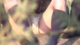 色んなポーズでたっぷり拝見した後は、パンティ脱ぎ(毛多め&剃り跡)、お尻、パンティのクロッチ染みを撮影して終わりです。