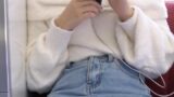 その後、車内が込んで来たタイミングで再び背後に付きスマホをバッグに仕込んで逆さを開始!