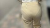 デニムの上から尻をモミモミ