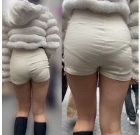 Gcolle パンティラインくっきりな白ショートパンツ美女