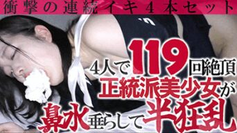 《衝撃の連続イキ4本セット》【電車チカン】★4人合わせて119回絶頂!!正統派美少女が涎も鼻水も垂らして半狂乱!!