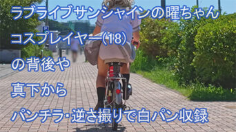 ラ〇ライブの曜ちゃんコスプレイヤー(18)の自転車の後ろに仕掛けた盗撮カメラで逆さ撮りドアップパンツ収録
