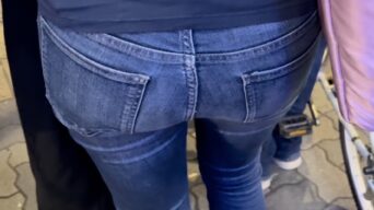 極上のスーパー美巨尻を堪能!ガチパッツンするデニム巨尻を突き出しパンティラインで♂を誘惑!